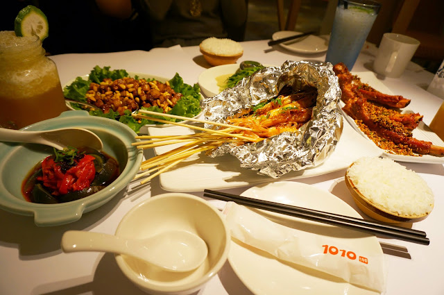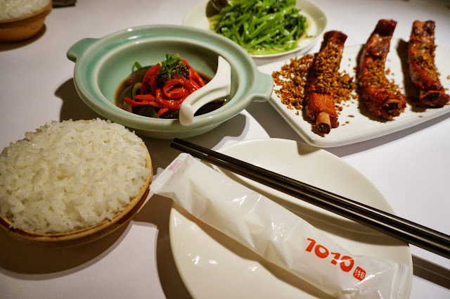 而位於12樓異國美食天地的 1010湘,誠如自我所標榜的現代與傳統的結合,首先透過用餐環境就能先窺之一二了,與其他同樓層的料理店家所不同的是,空間是位於在較為靠後端但卻用較大片的落地玻璃區隔出獨立的用餐空間,搭配上藍色的底色調呈現出不一樣的用餐氛圍。