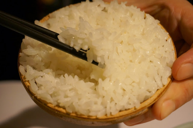 白飯:神仙缽飯,小小的一碗晶瑩透剔的米飯,透過加溫後微熱的缽體來盛裝,除了感受白米飯帶來的飽足感外,有趣而溫熱的盛體也相當有新意。