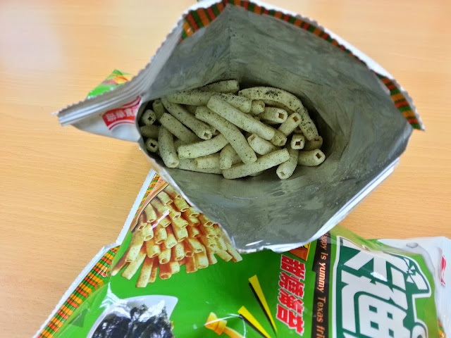 甜甜的海苔口味,說實在並沒有像茄汁的口味那麼濃郁的來吸引我,但是它清淡而甜甜的感受卻也相當受到喜愛吃清爽一點的零食的朋友喜好。