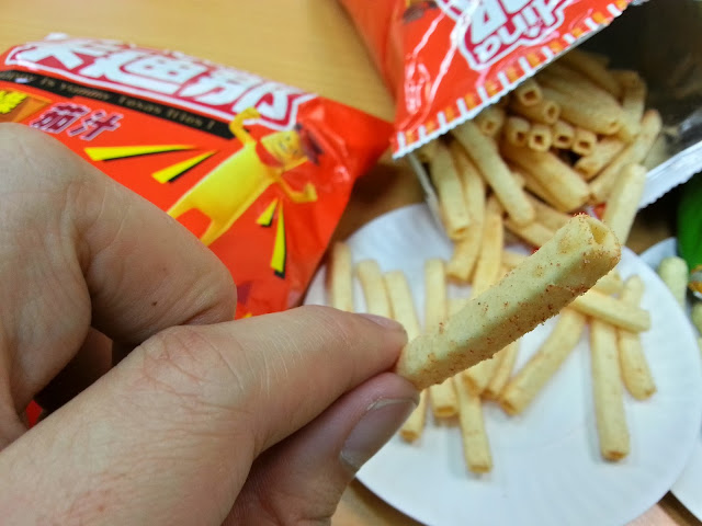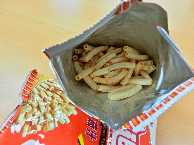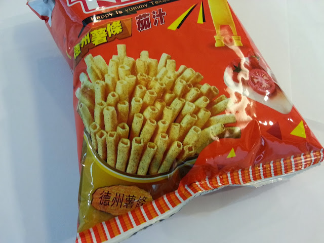 中空造型薯條造型,好拿輕巧,一直以來所吃的茄汁味道一樣感受相同,而薯條上的茄汁粉更是讓人在吃完薯條後吮指再三的回味。